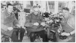 Karl Horstmann Senior (mitte), Karl-Heinrich Horstmann (rechts) und Rudi Horstmann (links) in der Werkstatt in Neddenaverbergen.